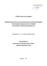 КРИМИНОЛОГИЧЕСКАЯ ХАРАКТЕРИСТИКА И ПРЕДУПРЕЖДЕНИЕ ТРАНСНАЦИОНАЛЬНЫХ ПРЕСТУПЛЕНИЙ ЭКСТРЕМИСТСКОЙ НАПРАВЛЕННОСТИ